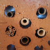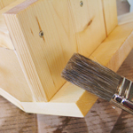 Hohlräume sauber bohrenHohlräume wurden unsauber oder mit unscharfen Bohrern bearbeitet, Späne ragen heraus und sind eine Verletzungsgefahr. Mit speziellen Holzbohrern gelingen saubere Eingänge ohne Späne. Jetzt noch das Bohrmehl ausklopfen und den Eingang sauber abschleifen. |