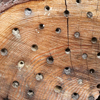 Ins Längsholz bohren, nicht ins StirnholzWird ins Stirnholz gebohrt (in die Baumringe hinein) – oft zu sehen bei Baumscheiben – reissen diese schon sehr bald und werden für die Wildbienen unbrauchbar, weil Feuchtigkeit und Parasiten eindringen und der Brut schaden. Sie werden zu tödlichen Fallen und schaden den Wildbienen mehr, als sie nützen. Noch unbelegte Elemente am besten sofort entsorgen, bei teilbelegten Bohrungen (mit einer Taschenlampe hineinleuchten) die leeren am besten gleich verschliessen zB mit einer Schraube, damit hier nicht weiter genistet wird! Ausschliesslich ins Längsholz bohren, also in die Rindenseite, quer zu den Baumringen. Nur abgelagertes, hartes Eschenholz dafür verwenden, um Risse zu vermeiden. |