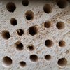 Nur Laubholz verwendenNadelholz ist ungeeignet, weil sich mit der Zeit und Feuchtigkeit Späne aufrichten oder Harz austreten kann, beides kann Wildbienen verletzen. Aber auch Buche reisst leider oft. Mehrjährig abgelagertes Laubholz - am besten ist Eschenholz - ist besonders geeignet, denn es ist besonders hart. Mit scharfen Holzbohrern können Späne vermieden werden. |