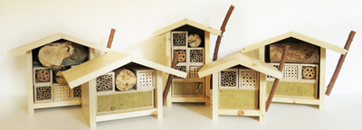 Kleine Nisthilfen machen es Parasiten schwerBei grossen Anlagen mit vielen gleich grossen Hohlräumen können nach einigen Jahren Parasiten so überhand nehmen, dass sie unbrauchbar werden. Kleine Nisthilfen mit vielen unterschiedlichen Durchmessern sind besser an verschienen Orten im Garten. |